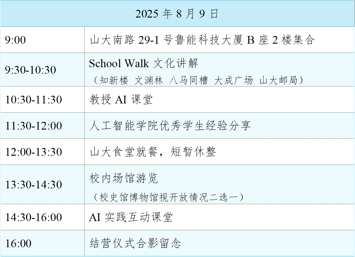 2.缴费:8月8日前直接汇款到至山东大学指定银行账户(缴费备注:山东大学“准大学生”AI启蒙一日营)。