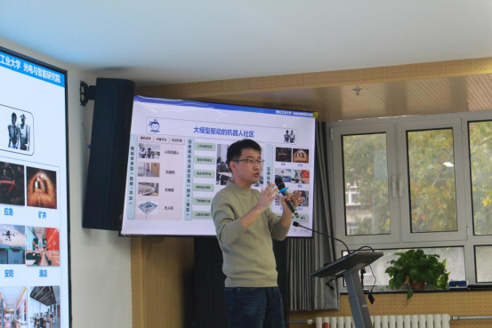 西北工业大学光电与智能研究院副院长赵斌副教授对《面向异构智能体的具身智能模型》进行了报告,生动风趣地探讨了软硬协同的具身智能系统构建路径。他介绍了团队在人形机器人、无人机、机械臂等异构智能体控制方面的实践成果,强调“感知-决策-行动”一体化模型在应急巡检、粮仓测绘、工厂管理等场景中的落地应用。赵斌副教授指出,具身智能的终极目标是实现对物理世界的高效、安全与泛化控制。