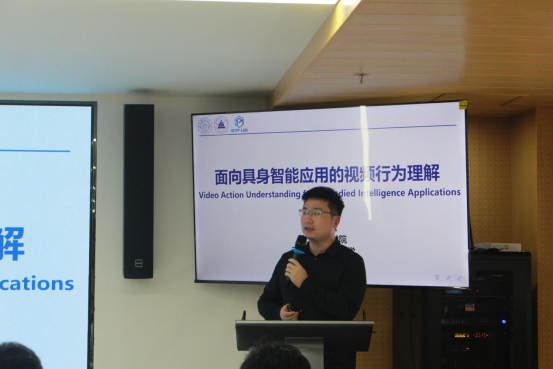脑机智能技术教育部重点实验室副主任,国家级青年人才,江苏省杰青,南京航空航天大学人工智能学院秦杰教授以《面向具身智能应用的视频行为理解》为题进行了报告,系统阐述了视频行为理解在时序动作检测、动作分割、精确定位与预测等方面的技术挑战。他介绍了团队提出的基于上下文感知的动作检测网络(ACGNet)、预测对比编码的分割模型(PACE)以及多阶段精炼定位框架(RefineTAD),并分享了多任务一体化处理的最新探索。秦杰教授指出,视频行为理解是具身智能实现环境感知与决策执行的关键支撑。