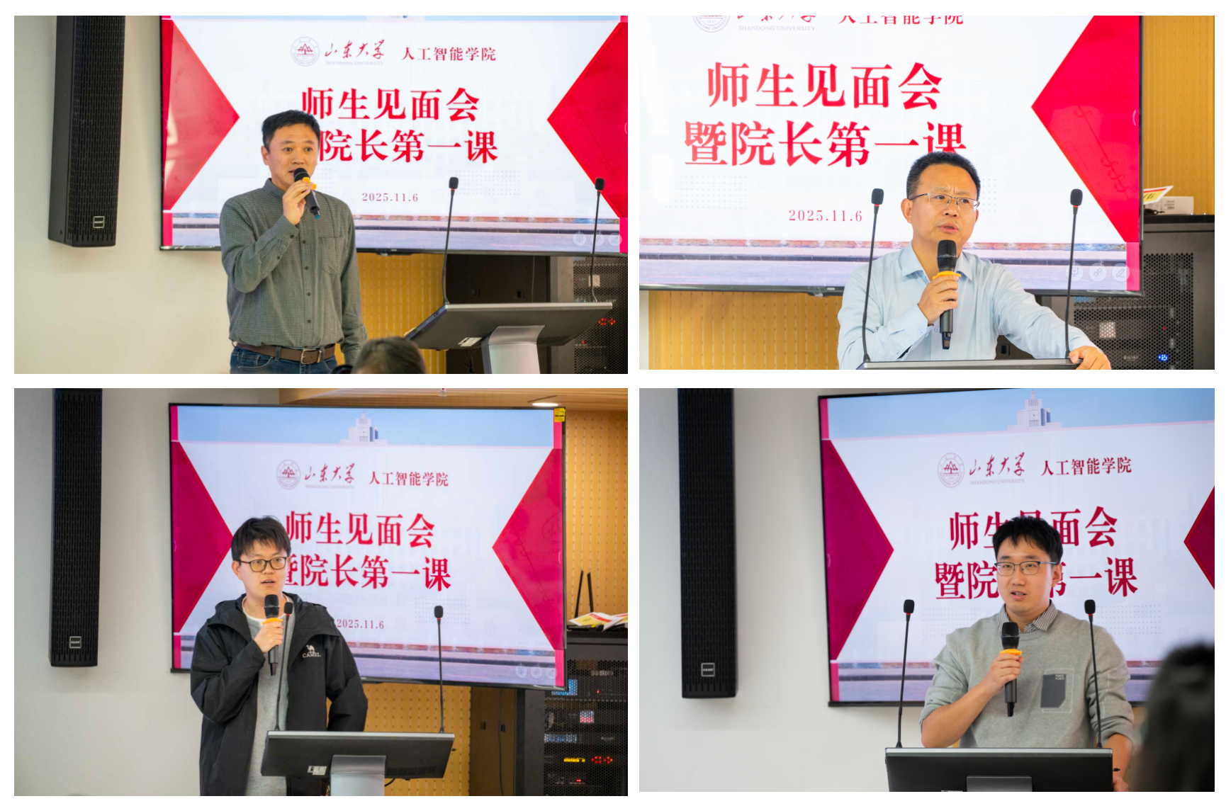 11月6日下午,人工智能学院2025级新生“院长第一课”在山东大学中心校区鲁能科技大厦二楼报告厅举行。计算机科学与技术学院、人工智能学院党委书记张四化,计算机科学与技术学院、人工智能学院院长成秀珍,人工智能学院副院长陈竹敏,人工智能学院助理教授、新生班主任徐志伟、罗传琛以及学院2025级全体本科同学参加活动,计算机科学与技术学院党委副书记、人工智能学院副院长魏晓珂主持活动。